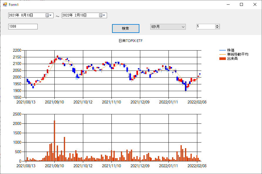 出来高チャートの追加は、btnView_Clickメソッドの変更だけで済んだので、そのサンプルコードを載せておきます。